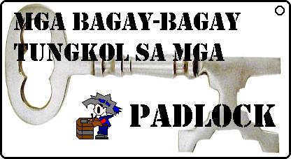 Ang mga padlock, me nabasa ko sabe si pareng Linus Yale daw ung unang nakaimbento ng padlock... ewan ko lang... basta katulong sila pra sa seguridad ng mga mamamayan, at sagabal naman para sa mga minamalas na magnanakaw. Kadalasan, pag ang jackpot ay nakalock o naka "secure" siguradong walang taong nagbabantay dito dahil di na nila eneekspek na me gagalaw pa dun, dito nasusubukan ang tunay na kahusayan ng isang magnanakaw. Masayang paglaruan at pag aralan kung pano mabuksan ang mga padlock, at marameng ekspertong magnanakaw ang di na nahahadlangan ng mga sagabal na ito, me nahanap akong link na guide pra sa pagbubukas ng mga padlock, kung paano ito gumagana at pano ito mapapasunod, click nyo lang ung asa baba, sabe dun unang unang dapat isipen eh "hinde imposibleng mabuksan ang mga padlock" nakatatak na kase sa isep naten na pag lock, di na bubuksan ng walang suse... iz ol in da mind ika nga (naks ingles), kaya hanap na kayo padlock, mga pangsungket at mangalikot na!