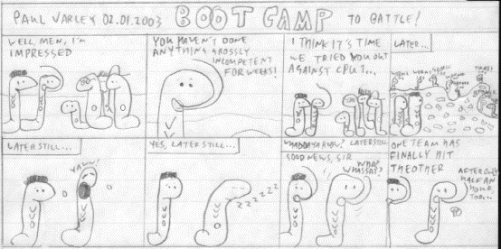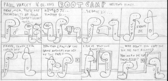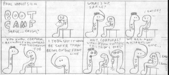 Below are seven comics by Paul.Power. They are set in a ‘Boot Camp’ and are pretty funny so have a read then leave your comments. You can download a .zip file of the comics from the ‘Downloads’ section.