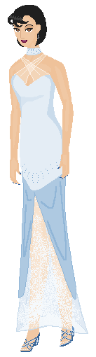 Marcia is wearing an Ocean Pearl dress, which is designed to match with the Ocean Glittering Collar around her neck that also, matches with the Ocean Sparkling earrings on her ears and her Ocean heels. This outfit is suitable for a presentation night, a formal, or a party.