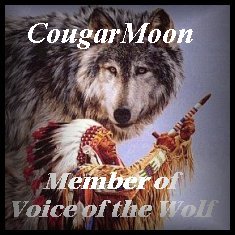 WELCOME TO COUGAR'S DEN, I HOPE YOUR STAY IS A PLEASANT ONE...HERE WE BELIEVE THAT ALL LIFE IS SACRED AND THAT ALL THINGS SHOULD BE RESPECTED AND PROTECTED!!! EACH AND EVERY CREATURE AND PLANT ON THIS PLANET PLAYS AN INTEGRAL PART IN THE BALANCE OF NATURE, AND IF WE KEEP DESTROYING WHAT WE WERE GIVEN THERE WILL BE NOTHING LEFT FOR OUR CHILDREN OR OUR CHILDRENS CHILDREN AND ALL THE GENERATIONS THAT FOLLOW...UNTIL WE CAN LEARN TO RESPECT EACH OTHER AND ACCEPT ONE ANOTHER AND WORK TOGETHER THERE IS NOT MUCH HOPE FOR THIS...PLEASE HELP US SAVE WHAT WE HAVE BEFORE IT IS TOO LATE...BEFORE THE LAST RAIN FOREST IS GONE...BEFORE THE LAST RIVER IS POLLUTED...BEFORE THE LAST HOWL OF THE LAST WOLF, THE LAST CALL OF THE LAST EAGLE OR THE LAST SCREAM OF THE LAST MOUNTAIN LION...IT IS NOT TOO LATE!!!