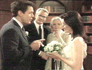 (Abigail’s wedding dress, designed by Carmen Mark Volvo, was off-white crushed velvet with a draped front and cut on the bias, with a little train in back. For more information on the gown, call (212)944-7370 and ask for Andrew.)