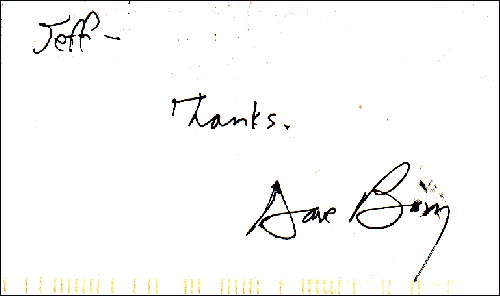 Well, now we know what he thinks! I sent Dave a letter informing him of this site, and this is the actual back of the plain white post card he sent back to me.