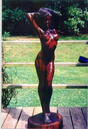 "WARM SUMMER EVENING"Solid Walnut 48"Inches Tall $2000.00 SOLD "WIND IN HER HAIR" SOLD To see more of ALAN SMITH's work please click on the star. Woodcarvers BBS