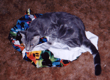 Miss Marni was my baby. I say "was" because she died on June 13, 2001. She was allergic to fleas, but the vitamins with the brewer's yeast had been working just fine. Until then. My mom came home to find Miss Marni's face all bloody from flea bites. Mom rushed her to the vet, but she died. I wish for her all the Dental Diet she can eat. At least now Tabby isn't alone.