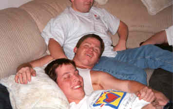 Keith, Gary, and Josh just lounging around at a party...at the parties we usually had, that was about all you could do by the end of the night!