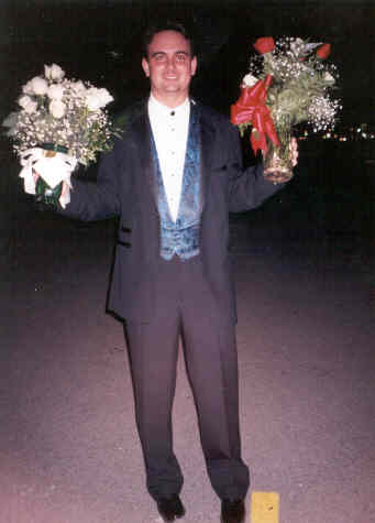 Jason posing in the parking lot with the flowers he got at his Senior Recital.