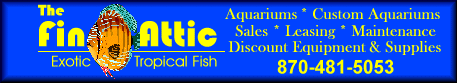 Today the aquarium is the world's most popular hobby. All across our country, in major cities and smaller ones you find aquariums in hospitals, banks, doctor's offices, hotel lobbys, nursing homes, even automotive service companies. Anywhere people wait or relax. It is now possible in the Twin Lakes area to have a beautiful aquarium and keep your elbows dry, without you leaving the comfort of your own home or place of business. We, here at The Fin Attic, are looking forward to providing a warm relaxing atmosphere for you.