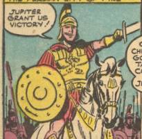 History: (Leading Comics #3) - <333 BC> Alexander and his Macedonian army rode against the Persian city of Tyre. Alexander was plucked from his time period, and brought to the 1940s by mad scientist Dr. Doome, who had perfected a time machine. Doome also snatched Nero, Genghis Khan, Attila the Hun, and Napoleon from history, and explained the wonders of his time machine. He wanted to build a machine that could penetrate the future, but needed their help to get money and rare metals to build it, and promised them conquest of the future. They agreed to help him after he gave them scepters that could return them to their own time whenever they chose. They robbed a national bank, and ran afoul of mysterymen Green Arrow and Speedy in their civilian identities. Khan disabled Speedy, and claimed his two-way radio as a prize. They made an escape in a seaplane Doome had waiting for them, and returned to Doome's lab. Doome had the funds, but now he needed precious metals for construction. The Seven Soldiers of Victory were alerted, and split up to stop the villains of history. Alexander went to the Florida everglades, where scientist Leo Starr was using radium to create robot soldiers for U.S. use. Alexander used a catapult to kill Leo, and mastered the controls that made the robots function. Soldiers Green Arrow and Speedy found him, but he had the robots apprehend them. One robot, Oscar, had a puckish human personality, and freed the heroes because it amused him. Alexander fled into the swamp, but was terrified by the wildlife. The heroes soon had him in captivity, but he used the scepter to return to a time when he was feared like a god.