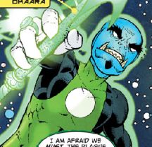 (R.E.B.E.L.S. #16) - Vril Dox teleported Rann to the former location of Tamaran in the Vegan system, determined to rebuild his L.E.G.I.O.N. there and clean up the system. The Guardians appointed rookie Lanterns Altin Ad'ms and Gorius Karkum as the new GLs of the sector. The L.E.G.I.O.N. recovered a stolen Arcturian vessel, but wounded Atlin Ad'ms in the process. Salaak and the GLC warned him, pointing out that Ad'ms was a beloved son of the mighty Warlords of Okaara, but Vril said he had a duty to his shareholders to aggressively pursue peacekeeping unless the GLC wanted to buy out his contracts.