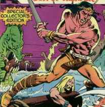 (Arak, Son of Thunder #1) - <eight years later> Arak joined his Viking companions on a raid of Northumbrian Monastery, but after looting the monks Arak stayed his companions from slaughtering the monks. The Vikings knew Arak would never be a true Viking. A year later Arak and the Vikings raided the same monastery, but found it under the control of sorceress Angelica, Princess of White Cathay. Angelica and the monks killed the Viking party, with only Arak and his rival Sigvald spared. Arak pledged himself to Angelica's service, and she told him they would travel to see Carolus Magnus of Frankland. Before they set sail she summoned a sea serpent to kill Sigvald and the remaining monks, but Arak couldn't stay his hand and attacked the serpant. A thunderbolt killed the serpent, making Arak question if he was not truly the sun of He-No. Arak was in time to save only one monk, Brother Phillip. Angelica had gone to Frankland without Arak, but Arak was determined to meet her there.