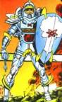 Powers: Atomic Knight wore a battlesuit powered by solar cells that gave him a degree of invulnerability and superhuman strength, protection from radiation and could trap opponents in a stasis field. The suit's attached blaster shot bursts of intense cold or heat. He possessed unspecified precognitive powers.History: A division of S.T.A.R. Labs researching how people would react to an atomic holocaust recruited Gardner Grayle as a test subject. They gave Grayle a battlesuit designed for a post-atomic world and had him test it out as Shining Knight. He joined the second incarnation of the Seven Soldiers of Victory to battle interstellar menace Agamemno.