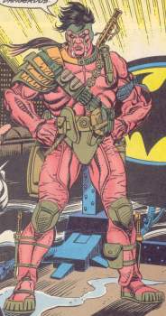 Powers: Ballistic possesses superhuman strength and agility. He has infrared sight and enhanced hearing, and his body is covered by an exoskeleton that grants him invulnerability. Ballistic is always armed with an arsenal of weapons such as firearms, grenades and plastic explosives.History: (Batman Annual #17)-Kelvin Mao was a Gotham City police officer who nearly died in the line of duty while fighting Space Parasites Angon. Kelvin was among the small number of Parasite victims that survived the attack, having his metagene activated and gaining superhuman powers. He wanted revenge for the deaths of his fellow officers that Angon killed. He made an abandoned subway terminus his headquarters, storing up a huge cache of weaponry. Taking the name Ballistic, he introduced himself to Commissioner Gordon and asked for the help of Batman III (Azrael) in taking down Angon. Ballistic and batman lured Angon to a booby-trapped house and detonated a series of explosives which wounded the creature and forced it to flee. Ballistic enjoyed this fight so much that he decided to go into business as a bounty-hunter.