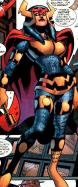 (JSA #36, 37) - The Ultra-Humanite used Johnny Thunder’s Thunderbolt to conquer the world, and imprisoned Barda and virtually every superhuman on Earth in stasis tubes, only reviving them when he needed mind-controlled slaves to serve in his personal guard the Thunderfront. Barda served as a member of the Thunderfront when they attacked the JSA, the only heroes not under the Humanite’s control. The JSA used a device that disrupted the braincaps Humanite used to control the Thunderfront, leaving them unconscious but freed from Humanite’s mental domination. When Barda and the other heroes awoke they aided the JSA in defeating the Humanite.