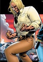 (Firestorm II #7, Bloodhound #5) - Bloodhound was being transported from Atlanta, Georgia back to lockup when his transport vehicle was assaulted by the nuclear met human Firestorm. Firestorm was a matrix composed of two people, and the hero Jason Rusch made the poor choice of bonding with crime lord Luis Salvador, who dominated the Firestorm-Matrix. Bloodhound once cost Luis, who he d done drug trafficking with in his police officer days, five million dollars and he wanted revenge, taunting Bloodhound for working for the law like the dog he was. Bloodhound put up a fierce struggle, giving Jason the opportunity to break the Firestorm-Matrix. Bloodhound scooped up the wounded Jason and ran into the woods., telling him they both had to focus on survival. They fled to a construction site, but Luis sent his men after them. Bloodhound brutally murdered his men, so Luis gathered local reinforcements. Jason said the only way they d survive was to become the Firestorm-Matrix, but Bloodhound had enough willpower to resist bonding with Jason, and told him to stay out of his head. Luis men attacked and Bloodhound tore through them all. He was ready to snap Luis neck, but Firestorm asked to deal with him. He bonded with Luis again, this time keeping control of Firestorm. He told Luis he really wanted to kill him for the vicious beating he gave his dad before they bonded, but he wouldn't. He gave Luis brain damage that left him crying and whimpering before leaving the scene. The police and Saffron eventually arrived, and took Bloodhound back into custody. He said the outside world was too weird, and he was ready for more jail time.