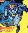 Powers: Blue Beetle was an intelligent businessman and a brilliant inventor. He was a decent fighter and acrobat until he developed a heart condition that curtailed both abilities. He was armed with the BB-gun, which shot compressed air or strobe-lights that blinded opponents. His primary mode of transportation was the Bug, a solar powered vehicle that could travel by sea or air and contained highly advanced weaponry and a state-of-the-art entertainment system.