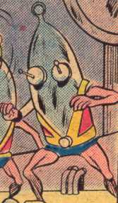 Powers: The Bogus-Men are superhumanly strong and fast, but they need to be recharged by a machine to keep their power at peak levels. If they are entirely cut off from their power supply they will cease to operate.History: (Plastic Man vol. 2 #12)-The mad Dr. Honctoff created the Bogus-Men to fulfill his dream of taking over the world. The Bogus-Men raided a number of top-secret N.B.I. research facilities to steal a stomach-ache virus culture. Plastic Man I was put on the case, but failed to catch the little buggers. Plastic Man eventually tracked down Dr. Honctoff’s laboratory and found the Bogus-Men assembling a ray device that would give everyone in the world a stomach-ache. Plastic Man ended the menace of the Bogus-Men by pulling the plug on the machine that was powering them, and Dr. Hontoff was carted off to jail.