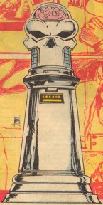 History: (Doom Patrol I #86, 87) - An unnamed scientist captured and experimented on the mind of a captured ape, giving him genius-level intelligence. The scientist was dying, and needed his simian prodigy Monsieur Mallah to transplant his brain into a sophisticated tank connected to a computer network that would keep it functioning. The scientist, now calling himself the Brain, set himself on the task on conquering the world. To this end he and Mallah organized the Brotherhood of Evil. Brain put together a daring scheme to steal the Statue of Liberty and a plot to rob a federal reserve bank with enlarged toy tanks, but he was foiled both times by the Doom Patrol