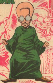 Powers: Brain Wave possessed mutant mental abilities; he could hypnotize people effortlessly, project realistic three-dimensional images, and project powerful beams of pure mental energy from his forehead with the intensity of a laser. Brain Wave was very frail, and avoided physical combat at all costs.History: Henry was a sickly and lonely boy who spent his youth in daydreams, until he discovered that he was a mutant capable of projecting realistic illusions from his subconscious. As he grew up e continued to hone his powers until he had mastered them. King became greedy, and used his thought images to aid in committing robberies. Once he was wealthy he named himself the Brain Wave and set his sights on world domination. He viewed the Justice Society of America as the only impediment in his plan, and tried many times to destroy them. To further this scheme he formed his own dark reflection of the JSA, the Injustice Society of the World.