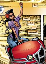 History: (Dial H #0) - Bumper Carla was the greatest champion of a fairground dimension, but one day she lost ehr powers and many died. She was obsessed with finding out what depowered her, and learned of an H-Dial on Prime Earth used by the ancient Mesopotamian hero Laodice to defend her realm as Bumper Carla. Her ally Slim thought she'd gone mad, especially when she pierced the dimensional barrier to go after Laodice. Slim followed, but was jailed by Laodice, who feared the strange costumed man was an assassin. Bumper Carla, her powers restored, killed Laodice, and freed Slim. Slim said she'd be punished for committing murder by being placed in the still zone, and she said she had no regrets. Slim apologized to Laodice's followers, and they returned to their home dimension.