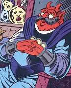 (Demon III #38) - Etrigan and company returned from the Impenetrable Fortress with the Thing-That-Cannot-Die, who was the one who’d stolen Belial’s heart. The Thing got hungry and ate the heart, so Etrigan performed a spell from the Eternity Book to make a new one for Belial. Belial placed the new heart in his chest and grumbled about the loss of his old one, he said it was serviceable enough. Belial called for Ca’rrion, and reunited Harry with his soul, but Harry remained a seat cushion, and Belial admitted he lied when he said having his soul back would revert Harry to normal. Harry fumed while Belial, Etrigan, Lobo and Morax all laughed at him. Etrigan revealed the real reason he’d agreed to save Harry’s soul. He’d found a spell in the Eternity Book that would let a prince of Hell rule as overlord for one day a year if he returned a human soul without asking for a reward.