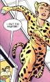 Powers: Cheetah had peak human agility and strength and was a ferocious combatant. She worse razor-sharp claws that could cut through steel. She suffered from extreme schizophrenia and alternated between an overwhelming inferiority complex and murderous rages.History: Debutante Priscilla Rich was mentally ill and suffered from an inferiority complex. At a charity event she threw she became insanely jealous of guest of honor Wonder Woman. She looked in the mirror and saw her evil side personified as a treacherous huntress dressed in a cheetah costume. She made the costume, took the identity of the Cheetah and dedicated herself to killing Wonder Woman.