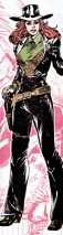 (Hawkman IV #7) - After so many false leads and dead ends, Cinnamon believed she found the identity of her father's killer to an outlaw named Graydon, who was staying in St. Roch. She rde there, but knew she couldn't just gun him down in the street, so, knowing he was a gambling man, she started playing cards with him. She provoked him into drawing a gun by shooting, and with the aid of fellow heroic gunslinger Nighthawk she gunned him down. A shootout occurred in the bar after one of the lynch mob accused gunslinger Cinnamon of cheating at cards. Nighthawk and Cinnamon killed the shooters, and Nighthawk was the reincarnation of Khufu, and they fulfilled the purpose of their latest reincarnation by realizing their love. They spent a tender night together, and Nighthawk told her he aimed to save Cyrus, a former slave falsely accused of murdering his employer Bois Garvey from the mob assembled by the real killer, Garvey's niece Matilda Dunney. Cinnamon loved him, but replied that she was no hero. Nighthawk broke into the jailhouse, shot his way through the mob, and broke Cyrus out of jail. Cinnamon arrived on horseback to take them away from the mob, saying she liked what she had found in Nighthawk, and didn't want to lose him. Cyrus led them to Stonechat House, the home of his deceased employer, and explained that Garvey had left him an inheritance so he could turn Stonechat into a museum. Cyrus stood trial, and as found innocent. Nighthawk and Cinnamon decided t stay in St. Roch together, and continued to defend the weak from the evil even though they kept saying their days of adventure were over. One day Matilda, now using her married name of Roderic, returned to town and killed Nighthawk by shooting him in the head. Cinnamon avenged him, killing Roderic, but dying in the process. Nighthawk and Cinnamon's love had kicked of the curse their souls were under, and they had to die at the hands of a descendant of Hath-Set to be reborn and find each other again.