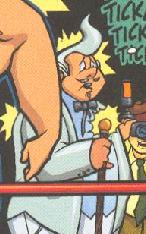 (Big Daddy Danger #3) - Big Daddy had a championship steel cage match against a mystery opponent at MSG, and was also supposed to intercept a drop-off of unknown materials. His head wasn't in the game, he was too concerned about his strained relationship with Danny. The Colonel reminded him he had a job to do, and said Danny would understand one day. Danny was feeling petulant, so he hid in the MSG crowd, and this concerned Daddy even more, his son was always cheering the loudest for him. His opponent turned out to be his brother Diablo, who he'd thought dead. The match was intense, and he had to climb the cage and trick Diablo into flinging him into the crowd so he could intercept a briefcase being handed over to Ferocious Farouq and foil the drop-off. When they reentered the cage he was distracted enough for Diablo to finish him off, becoming the new champion and handing him his first defeat in the ring. Diablo promised Danny he could be his sidekick, and he left with his uncle. Daddy was having a breakdown when the Colonel gave him a pep talk, promising him they'd take down Diablo and win back Danny's love.
