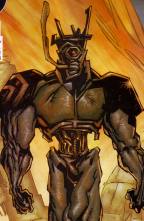 History: (Enginehead #1-3) - The Mechanic's life fell apart, and he realized he was not alone, that the whole world was crumbling. With his cyborg assistant Grease Monkey he recruited Brainstorm, Doctor Cyber, Automan, Rosie of the Demolition Team and Prof. Hamilton, telling them they could change the world if they let him use the unique spark they each possessed to create the gestalt robot Enginehead. Automan demanded to be made the primary mind of the gestalt entity. He planned on recruiting Tin of the Metal Men, who was impressed with what he was offering, but admitted he was too scared to participate. Grease Monkey chose Jackhammer as a substitute, saving him from a suicide attempt before locking him into the sixth cylinder of the machine that would create Enginehead. The Mechanic activated the machine, creating Enginehead from his recruits, and Grease Monkey praised him as a great man. Like his creator, Enginehead was determined to find flaws in the system of society and correct them. He poured over Mechanic's case files, and investigated the murder of a young runaway. He identified her pimp, Drew Lavin as the murderer, ripping his arms off. Lavin's boss was human trafficker Arturo Lapaglia, whose criminal enterprise he destroyed, and reported back to his creator, saying he'd corrected a flaw. He reported back to Grease Monkey and the Mechanic, who called him the perfect son. Enginehead was concerned that he'd had a flashback of Rosie's previous life, but the Mechanic assured him that he was created from only the best parts of those who'd sacrificed themselves to make the perfect machine who would save humanity from itself. Jackhammer served as the main organic part of Enginehead's body, and as he was being repaired had a reverie about the pin-up girls he was obsessed with while his own person. Enginehead wanted time off from his duties, and was berated by Grease Monkey for it, but he eventually gave him approval for a walk around town. Enginehead destroyed a truck, saving a boy from running over, but had a vision of the future of massive layoffs in Sunshine resulting in several worker's suicides, and wondered how he understood the way things were connected in life. Enginehead thought that if he could fix his broken brother he could fix the world, and after stopping Samuel from abusing a girl he told him he was there to help. Enginehead / Jackhammer surgically took Samuel apart and rebuilt him, removing his predatory predilections, and changing him from a sociopath to someone who understood all the pain they'd caused to innocents. Samuel wished he was dead, and Enginehead promised that as soon as he figured out Sam's connection to him and the connection of his spark to something bigger he'd put him out of his misery. Choosing to blindly follow his programming Enginehead rescued a cat from a tree and gave a homeless woman startup money and stock tips that would make her a millionaire. The Mechanic, despairing in his project not following his programming told Enginehead that Jackhammer was never supposed to be the brains, it was intended to be Automan. Jackhammer was meant as spare parts, and he figured a suicidal man would not care what happened to his mind or body. Grease Monkey got in his ear, saying the Mechanic was disappointed he wasn't taking care of every flaw in the system, but Monkey saw one huge flaw underlying everything that he hoped Enginehead would come to see. Arturo's investor Doctor Grass, upset that Enginehead cost him a fortune, hired Floronic Man to kill him. Enginehead destroyed Floronic Man's body, manifesting the ability to talk to and control machines, and accidentally crippling a woman that resembled his fantasy girl. Floronic Man told him to seek therapy before going off to find a new body. The Mechanic was in despair at seeing Enginehead's new path and abilities.