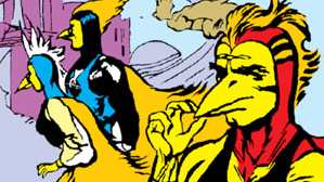 History: (Flash Comics #71) - The Feitherans were an intelligent race of bird-men whose civilization had long been isolated from the rest of the world. A pilot who blew off-course spotted Feithera, and reports of what he’d seen were met with skepticism. Carter Hall’s explorer’s club heard the news, and wanted to investigate for themselves, intending to hunt the Feitherans for sport, because they’d make much more challenging game than ordinary animals. Carter Hall was disgusted, telling the explorers that they couldn’t invade a civilization and start killing people, but the club members brushed off his concern, saying birds were birds. Carter Hall changed into his mysteryman identity Hawkman and sent a hawk to Feitrhera to warn the Feitherans, while proclaiming that he’d act as their guardian. Hawkman met with Worla, the leader of the Feitherans, and he said that even though his people were a peaceful race dedicated to art and culture, they had a way to defend themselves, globlasses that disrupted the nervous system. Feitheran Trata, who sought to wrest control away from Worla, overheard the conversation, and decided to stage a coup with his few loyalists. He met the explorer’s club hunters, and used the globlass on them, but then provided them with absorbant lockets that counteracted the globlass in exchange for their loyalty. The hunters tried to hunt the Feitherans, but despite their immunity to the globlass, Hawkman made short work of them. Worla gave the hunters an overview of Feitheran advancements in culture, science and medicine, and they realized how wrong they’d been in wanting to hunt the Feitherans. They wanted the Feitherans to meet the learned men of the world, but Hawkman forbade it, saying other opportunists like the hunters would come along and try to exploit the Feitherans. Hawkman made the explorers swear secrecy about the Feitheran’s existence, but Trata, incensed that Hawkman had foiled his coup, chose that moment to attack. He shot Hawkman with the globlass, but Hawkman’s automated wings kept him on balance and he overpowered the traitor. Worla and the Feitherans feasted with Hawkman and the explorers in celebration of Feithera and the secret of its’ continued existence.