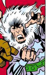 (Kamandi #25, 26) - Flim-Slam showed Kamandi the wrecked remains of his showboat while they tried to figure out how to escape the island. Kamandi’s mutant friends Ben Boxer, Steve and Renzi reunited with him, having walked the entire sea bottom in their organic steel form to find their friend. Flim-Flam and his companions hid until Kamandi assured them his mutant friends were no threat. Flim-Flam mentioned that he had a popular traveling show with Dukei, Lukie and Jukie performing acrobatic tricks and a juggling act, Flim -Flam said if Kamandi and his mutant friends joined his act people would call him Flim-Flam the Great, but everyone was insulted by the offer. A giant mutant sea creature attacked them, before being dragged under the sea by an equally gigantic rival mutant. Kamandi and his friends knew they had to get off the island fast, and searched the Reim Institute grounds until they found a hovercraft. After saving the vessel from a mutant eel they set set course away from the island. The engine gave out just as they were confronted by flying sharks that battered the hovercraft. Kamandi managed to fight them off long enough for Ben Boxer to get the engine running again, and they soon spotted land protected by a great wall. Kamandi and friends tried to figure out how to scale the vast walls, and fell in luck with a giant mutant eagle. Ben Boxer and a more reluctant Kamandi agreed they’d use the eagle to fly up the wall, and hoped to reunite with their friends later. Flim-Flam, his men and Renzi and Steve said their goodbyes as Ben and Kamandi flew into the Dominion of the Devils.