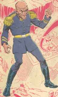 (My Greatest Adventure #80)-General Immortus confronted the Doom Patrol on their very first mission. They both vied for the remains of a crashed spaceship, and during the fight the ship took off to return to its' home planet. The Doom Patrol escaped, but General Immortus was left on board. Immortus found an escape pod seconds before the spaceship collided with a mountain range and exploded.
