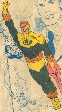 (Showcase '93 #4, 5) - Geo-Force flew Denise Howard to Markovia so they could spend some quality time together, and she was deeply impressed with his nobility. Geo-Force had to deal with a mysterious electric fire at the Earth-Fusion Lab before bringing Denise back to his castle. He showed her ceremonial armor, and told her that Queen Ilona was expecting an heir. he'd imagined he'd one day be king, but was happy to step aside, because his first duty was to serve Queen and country. They soon discovered the culprits behind the fire, the Untouchables, villains who could turn intangible. One of their number, Clyde Barrows, was dying because he'd been permanently rendered intangible, and they needed Markovian tech to fix his condition. Geo-Force promised to render his assistance if they agreed to surrender to his authorities, because he wasn't about to hand over scientific equipment to criminals. They balked, and turned him intangible so he could see what their friend was going through. Geo-Force almost suffocated because he couldn't breathe air before using a plus-gravity field to make himself more solid. Untouchable Bonnie panicked and put a gun to Denise's head. Geo-Force still refused to deal with terrorists, and negotiations got tense before Denise reminded them that if they didn't start working together Clyde as a dead man. Geo-Force made a royal pledge to cure Clyde, and he would allow them to go free afterwards. They went to Dr. Kneidel's lab, where she hooked up a generator to Geo-Force so he could extend his plus-gravity field to Clyde Barrow. Untouchable John Dillinger doubted the royal word and started destroying equipment, making Geo-Force's generator overload so they'd have a chance to flee. Geo-Force released the resulting explosion in the atmosphere, and retuned to earth to apprehend the Untouchables, who realized they screwed up in not trusting his word.