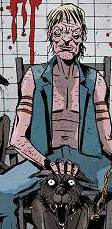 (Sweet Tooth #16, 17) - Glebhelm told Jepperd it was a glories day to destroy the Preserve, and said he felt as righteous as the day his wolf children were born and showed him the path to salvation. Jepperd said he wasn’t looking to convert to Glebhelm’s religion. Glebhelm said his wife wasn’t a believer either, and he’d let his wolf children eat her. Jepperd and the Animal Armies breached the Preserve’s front gate, and Abbot ordered Singh to bring the hybrids down to the kennels and keep a watch over them. Jepperd’s memory of his wife was starting to fade, and he realized he was completely driven by saving Sweet Tooth, an innocent, from Abbot. Jepperd, Becy and Lucy made their way to the kennels while the Animal Armies mowed down Abbot’s militia. Glebhelm did take notice of Jepperd leaving the battlefield. Abbot confronted Jepperd, who told Lucy and Becy to go find Sweet Tooth while he dealt with his nemesis. Abbot taunted him about not being a man because he couldn’t save his wife’s life, and he allowed Jepperd to beat him bloody before claiming that he’d lied when he’d said Jepperd and Louise’s son died soon after being born. Abbot stabbed Jepperd in the chest, and Abbot defiantly told him that his world was crumbling around him as the Animal Armies continued their onslaught. Abbot promised to gut Jepperd, and kill his son afterward. Abbot’s brother Johnny hit him in the head with a rifle, and begged him to leave the Preserve and all the evil he’d done behind, saying they could go back to being best friends like when they were children. Abbot attacked Johnny with his knife, and in the struggle Johnny’s rifle went off, blowing off Abbot’s hand, and Abbot fled. Lucy and Becky checked the maternity ward, but no women pregnant with hybrids were present, and they continued on until they reached the kennel. Lucy recognized Singh, who was watching Sweet Tooth and the others, as the man who’d delivered her baby and left scars on her she still had to that day. She put a gun to his head, but Becky told her not to kill him in front of the children. Glebhelm caught up to them, and sicced his wolf children on them. They fled and ran into Jepperd and Johnny, but horse hybrid Buddy was caught by the wolf children, who began to maim him, and dragged him away. He called out to Jepperd, calling him da-da, and Singh admitted that Buddy was his child. It broke Jepperd’s heart, but the militia were returning to the kennels, and they knew if they didn’t immediately flee they’d all be lost, so he was forced to leave Buddy to his fate. Abbot surveyed the Preserve, and although they suffered heavy losses the Animal Armies had killed virtually all of his militia. Abbot returned to the kennel, and seeing Buddy being mauled shot a round into the ceiling to scare the wolf children away before firing a round into Glebhelm’s head, saying Glebhelm’s wolf boys now belonged to him.