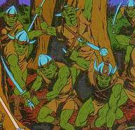 Powers: Goblins were small humanoids armed with swords, spears and bow and arrows.History: (Dragonlance #17) - During the Second Dragon War dragons ravaged the country. Wistan Dawnbringer's family was killed, and his village evacuated in the aftermath of a dragon attack by the Knights of Solamnia. He wanted to run off by his own and get revenge, but Lord Sigmun offered him a chance to join the Knights if he foreswore vengeance. He went with them, and that night a band of goblins and a sorceress following a dragon attacked their camp. Impetuous Herrol died during the attack before it was repulsed, and young Wistan understood the importance of disciple, telling Lord Sigun he wouldn't let him down.