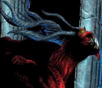 (Earth 2 #10, 11) - The Tower of God was a repository for chaos magic, and the Great Beast was the guardian of the tower. Khalid Ben-Hassin briefly served as the vessel for the ancient magician Nabu when he wore the Helmet of Fate, but finding himself unable to control Nabu's magic he banished the helmet to the Tower of God. Wotan wanted the power of Nabu for theirself and forced Khalid and his ally Flash into the tower, holding Flash’s mother Mrs. Garrick as a hostage to motivate them. Nabu’s magic had completely taken over the tower, altering it’s structure and turning it into the Tower of Fate. They wandered the twisting spiraling halls of magic until they were confronted by the tower’s guardian, the Great Beast. Flash scooped up Khalid, and raced away to safety. He said he’d go up against the Great Beast alone to give Khalid time to find the Helmet of Nabu. Flash admitted he wasn’t sure if he’d survive, and Khalid said he was unbelievably brave. Flash demurred, saying he had to make sure his mother staid safe, and he’d promised a dying god he’d try his best to be a hero. Flash drew out the Great Beast, but it made short work of him. Flash distracted the Great Beast long enough for Khalid to find the helmet, and Flash’s heroism inspired him to accept the burden of being Nabu’s vessel. He put on the helmet and declared himself Dr. Fate. He subdued the Beast, saving Flash’s life.