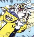 Powers: Gridlock was a skilled inventor who rode a hoverbike and wore a gauntlet that could drain kinetic energy from people and objects, bringing them to a standstill for about an hour. At maximum range, his gauntlet could affect an entire city.History: (Impulse #7) - Girdler planned Technodyne's