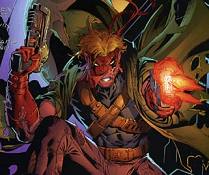 (WildC.A.T.S: Covert Action Teams (Image) #3, 4) - The WildC.A.T.S. and Youngblood clashed, with Spartan trying to explain that Dan Quayle was possessed, but his pleas fell on deaf ears. Pike noticed that some of the WildC.A.T.S. were absent from the fight and took coda warrior Devin to the Aironomics control center, where Helspont and M’koi were opening the gateway to the Daemonite homeworld with the Orb. The rest of the WildC.A.T.S. appeared and attacked them. Gnome, who’d been playing the WildC.A.T.S. and Cabal against each other, broke into the Orb’s containment facility with the help of the Triad. Youngblood beat their opponents, but knew something was wrong when Dan Quayle pulled a handgun and prepared to execute Voodoo. Shaft tried to stop him, but Quayle shot him, with the bullet grazing Shaft’s head. Voodoo exorcised B’lial from Dan Quayle. The Cabal fended off the WildC.A.T.S. long enough to open a stargate with the Orb, and an armada of Daemonite warships poured forth. Youngblood and the recovered WildC.A.T.S. fought Helspont. Voodoo tried to exorcise him, but found her powers ineffective because he was using an Arcturan host, not a human one. Spartan, willing to fight to the end, removed the relay switch, causing an explosion that blew him up but shut down the main control system, shutting the stargate. Helspont was furious that 30 years of work and planning on his part came to nothing, but vowed to snatch victory from defeat by claiming possession of the Orb. He opened the reactor core to find the Orb missing. Gnome and the Triad revealed themselves, with Gnome showing that he had control of the Orb claiming to rightfully belonged to him, and him alone. He blasted Helspont, critically injuring him. Void warned him that the Orb’s powers had become unstable, but he simply blasted her with it. Jacob Marlowe ordered him to drop the Orb, and Gnome reminded him he owed him a favor, which was to stay out of his way. Marlowe was fine with breaking his promise, shooting off the arm Gnome was holding the Orb with. The arm and Orb fell into a reactor and Gnome dove in to try to save his precious Orb. The Orb caused the reactor to go critical, and Youngblood, the Cabal and Triad all fled the facility. Marlowe lent his power to the weakened Void, allowing her to teleport the WildC.A.T.S. to safety. They celebrated with champagne, but Voodoo said she wasn’t in the mood for a victory lap because Spartan had to sacrifice himself to save the day. Marlowe showed her one of Spartan’s cyber-synthetic bodies, and said his mind and memories were currently being downloaded into it.