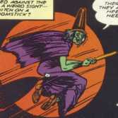 Powers: The Black Witch was a skilled sorceress. She rode on a flying broomstick, possessed the ability to shape shift into various animals, and could summon elemental monsters.History: (Batman I #5) - Professor Anderson invented a machine that could physically transport a person into any story they were reading. He’d sent his daughter Enid into “Anthology of Fairy Tales,” and she hadn’t returned after days. She’d been captured by Gruel, The Black Witch, a terror of Fairyland that abducted fairytales and boiled them up in her cauldron. Anderson sent Batman and Robin to Fairyland to save Enid, and after a number of setbacks they made their way to Gruel’s castle. She sent them to her dungeon, but they escaped and learned from her prisoners that she could be defeated if Batman outwrestled her as she shapeshifted into various animals. Batman grappled her, and after she lost she hurled herself from the parapet of her castle to her death.