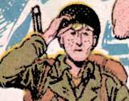 (DC Comics Presents #10) - On patrol in France, Bulldozer and Easy came across Baker Company, a troop of Germans disguised as American soldiers, and killed all of them except for two who fled. Superman had been thrown back in time to 1944, and was amnesiatic. He didn’t understand why he was wearing a circus costume, so he took an army outfit discarded by one of Baker Co. Easy met Superman, and were leery of his story about amnesia, but accepted him as Tag-Along after he answered some American pop culture questions. Superman didn’t realize that the army outfit he was wearing had a tracking device, allowing the Germans to hone in on Easy and send a Tiger Tank after them. Rock gave Tag-Along a bazooka, but Superman’s memory was jogged because of his inexorable code against taking a human life. He disappeared from Easy, but took out the tank and as German plane sent against easy, making sure there were no casualties. He destroyed the homing beacon and confronted a German troop waiting for Easy at a nearby farmouse. He called himself Corporal Steel and told them he was a super-soldier, just like Rock. After a demonstration of his powers the Germans ran in terror. Superman allowed himself to be found by Easy in the wreckage of the German hideout, and played dead, not wanting to disrupt history by letting them know who Superman was. Easy commended whatever he did to make the Germans flee, and gave him a proper burial.