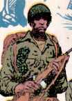 (DC Comics Presents #10) - On patrol in France, Bulldozer and Easy came across Baker Company, a troop of Germans disguised as American soldiers, and killed all of them except for two who fled. Superman had been thrown back in time to 1944, and was amnesiatic. He didn’t understand why he was wearing a circus costume, so he took an army outfit discarded by one of Baker Co. Easy met Superman, and were leery of his story about amnesia, but accepted him as Tag-Along after he answered some American pop culture questions. Superman didn’t realize that the army outfit he was wearing had a tracking device, allowing the Germans to hone in on Easy and send a Tiger Tank after them. Rock gave Tag-Along a bazooka, but Superman’s memory was jogged because of his inexorable code against taking a human life. He disappeared from Easy, but took out the tank and as German plane sent against easy, making sure there were no casualties. He destroyed the homing beacon and confronted a German troop waiting for Easy at a nearby farmouse. He called himself Corporal Steel and told them he was a super-soldier, just like Rock. After a demonstration of his powers the Germans ran in terror. Superman allowed himself to be found by Easy in the wreckage of the German hideout, and played dead, not wanting to disrupt history by letting them know who Superman was. Easy commended whatever he did to make the Germans flee, and gave him a proper burial.