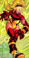 Powers: When Jesse spoke the formula “3X2(9YZ)4A” aloud she gained superhuman speed, and could turn-off her speed by speaking “Z25Y(2AB)6.” These formulas functioned as mantras that connected Jesse with the Speed Force, and few other people can utilize them. When endowed with super-speed Jesse also gained an aura of unknown energy that protects her from friction heat and other adverse effects of super-speed. Jesse possessed superhuman strength.History: Jesse was the daughter of mysterymen Johnny Quick and Liberty Belle.She inherited her mother's superhuman strength, and her father taught her the formula “3X2(9YZ)4A” that gave her superspeed. Johnny hoped she'd become a superhero, but she was content to document the history of superheroes. While studying at Gotham University she had to use her powers to aid the Justice Society of America, and became the heroine Jesse Quick.