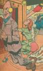 Powers: Jets wore motorized shoes that let him fly at high speeds. His shoes could also shoot out bursts of flame.History: (Plastic Man #13) -Jets watched out for criminals carrying out robberies, distracted the police with his flying so the crooks wouldn’t get caught, then robbed the crooks themselves. Many people thought Jets was a myth, and the F.B.I. had a hard time pinning anything on him since he robbed from criminals, not the most respectable witnesses. Jets stole from the robbers of the Dreamditch art auction when Plastic Man caught up to him. Jets flew off with Woozy Winks as a hostage, but Woozy fell, was caught by Plas, who turned into a trampoline, and sailed through the air, knocking out Jets. Jets fell into a body of water, and his water-clogged boots were useless, making him easy prey for Plas.