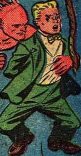 (Flash Comics #76) - Crooked taxidermist Si Heavily gave his burglar pal Harry Ferret a dogsuit he could slip on to commit crimes unnoticed. They went into a bank to so Si could exchange old bills for new ones when Ferret swiped the bills, but gave himself away when he congratulated Si on a job well done. They ran away from the police and split up when Johnny Thunder and Peachy spotted Ferrett and Peachy demanded they take him home, hoping there’d be a reward for a lost dog. Ferret quickly tired of Peachy, who treated him too rough and rode him around the Thunder house. A news report came on about the bank robbery and Ferret fled back to Si’s shop, but Johnny summoned the Thunderbolt who rounded them both up.