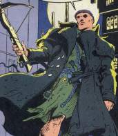 (Demon III #25) - Ryme spent centuries learning magic, and became a demon-slayer as revenge for Dag-Raith putting a curse on him. Now calling himself Judge Ryme, he found an abandoned church to live in in Gotham City and sensed the demon Etrigan’s presence in Gotham City. He shadowed Jason Blood, the mortal bonded to Etrigan, watching him buy groceries with Randu Singh, and decided to use Randu to gain an advantage over his target. Ryme followed Randu home and beat him, demanding he call Jason Blood up. Randu refused to betray his friend until Ryme shot him in the arm. When Jason answered the call Ryme told him his friend’s life was in danger, and demanded Jason confront him as Etrigan. Jason transformed into Etrigan and battled Judge Ryme. Ryme was immune to Etrigan’s hellfire, and his magic crossbow could harm Etrigan, but they nonetheless fought to a standstill. Ryme’s mystic pistol leveled an apartment building, and Etrigan called him a sinner, showing him that he was now responsible for the death of dozens of people, including children. Ryme, ashamed of himself, fled, and Etrigan was happy to let him live so he could suffer from the guilt of his actions. Ryme returned to his shelter in the church and flagellated himself, promising God he’d continuing punishing himself until the Lord deemed he was once again worthy to hunt demons.