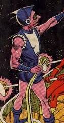 (R.E.B.E.L.S. #12) - Garv and Strata had Vril drop them off at Port Slarvit, unwilling to go on what they saw as a suicide mission when they had their son to think of. Xylon said he would shoot the next person who tried to abandon the R.E.B.E.L.S., earning him points with Vril. Vril split the team up to complete his plan for a weapon that would sever Starro's connection with his slaves. Adam Strange, Ciji, Bounder and Xylon went to the secret Dominator science facility on Kaipei to retrieve a genebomb, which the Dominators had long denied having. The Dominator scientists were not eager to cooperate with Xylon, but military caste trumped the science caste, and he told them they didn't have a choice in the matter. On Kalanor Vril found the decapitated Despero, and told him he'd regenerate his body in exchange for help with Starro. On Dhor Kanjar Ro separated from Captain Comet and Wildstar, who gathered the fragments of the gamma going. Kanjar said he was going to retake his world by force, and Vril told his team to let him go. In truth Kanjar was on a side-mission for Vril which would end his feud with Despero. Despero admired how Vril played his teammates against each other, and wondered why he always pandered to law and order. Vril said law was a bludgeon in his hands.