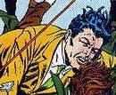 (Batman I #313, 314) - Two-Face and his gang stole the latest binary codes for the U.S. missile defense system, but his henchman Specs felt guilty for betraying his country and hid the codes in a manila envelope. He called the GCPD to confess, but Two-Face executed him before he could reveal where the codes were. The government put King Faraday on the case, and he started surveilling Two-Face’s hideout. Batman discovered the hideout, forcing Faraday to go into action. Two-Face activated a steel door that divided his hideout in half and escaped. King Faraday didn’t want him getting in his way, but Batman said he had a duty to Two-Face, he’d promised himself to honor the memory of crusading attorney Harvey Dent by never allowing him to hurt anyone else ever again. Batman worked out that Specs had hidden the codes inside a giant piggybank used as a prop for the Gotham Children’s Telethon. Two-Face and his gang posed as security guards loading up the telethon donations from the piggybank into an armored truck and raced off. Batman and Faraday pursued them in the Batmobile, with Batman causing them to crash by blowing out the armored truck’s tires with a laser beam. Two-Face fled with the codes up a fire escape, and Faraday aimed his pistol at him. Batman grabbed his arm, ruining his shot. Batman said Two-Face was mentally ill, and he couldn’t allow Faraday to murder him. Faraday reminded Batman that national security was at stake, and warned Batman to stay out of his way while he dealt with Two-Face as he saw fit. Batman and King Faraday independently did information gathering and learned that Two-Face was in New Orleans. Two-Face was hiding out at the River Queen Restaurant and met representatives from the U.S. and Russia. He told them he’d decide which of them would get the codes after he flipped a coin, but at a time and a place of his choosing. Shortly afterwards King and Batman burst in on him, and Two-Face escaped through a hidden door. King and Batman found themselves trapped in a room boobytrapped with heat-seeking lasers. Batman set off a phosphorus capsule from his utility belt, drawing the fire of the lasers, and the ensuing fire drew the staff of the restaurant. Two-Face met the U.S. and Russian delegate at a Mardi Gras festival, and after taking 22 million from each of them he flipped his coin. He caught it between his fingers, and said that because it was on it’s edge they lost and he won. Two-Face took off in a blimp and Batman managed to board it. Two-Face attacked him fiercely and Batman hung unto the blimp with his fingertips. Two-Face was ready to kick him off, but Batman persuaded him that he had to use a coin flip to make that decision. Batman distracted him long enough for King Faraday to enter through an entry hatch and he shot at the villain. His bullet hit Two-Face’s coin and he dived out of the blimp to grab it, saying that his life was worthless without it. Batman was saddened by his apparent death, and asked if Faraday was proud of himself. Faraday was satisfied the missile codes died with Two-Face and said he’d left behind fulfillment and happiness when he’d chosen his line of work.