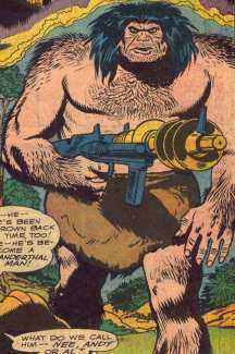 Powers: Professor Koravyk was a brilliant inventor, but his transformation into Kor left him with only primitive intelligence. Kor possessed superhuman strength and invulnerability, and was armed with a sonic blaster capable of leveling buildings.History: (Doom Patrol vol. 1 #114)-Professor Koravyk was a renowned inventor, but he had moral objections to creating weapons of war. Feeling threatened by his government, he fled to America, but this only created new problems. The American government was also pressuring him into making weapons of war, and his home country sent secret police to hound him. He pleaded his case to his old friend the Chief, but was rebuffed. He decided the only way to save himself was to open up a time barrier and send himself into prehistoric times. He activated his time machine, which had never been properly tested, but the result was disastrous. Instead of opening a portal into the past, his laboratory and an entire city block was transformed into a million year old prehistoric landscape. Koravyk was also devolved into a hulking caveman. Unlike his pacifist alter ego, the caveman only had love for war and destruction. He named himself Kor the Conqueror and after arming himself with a sonic blaster he started attacking the rest of the city. Although he could no longer comprehend the world around him, he still had a primal urge to conquer it. Chief sent his Doom Patrol to subdue Kor, which proved easy after they destroyed his sonic weapon. Chief used his scientific genius to undue the damage Kor caused, and transformed the caveman back into Professor Koravyk. Koravyk was grateful, and promised to return to his studies and devote himself to creating world peace.