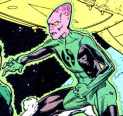 Powers: As a Green Lantern, Lan wielded a power ring fueled by willpower and capable of doing almost anything he could imagine as long as it was recharged by his emerald power battery once every 24 hours. Examples of its' powers include flight, phasing, creating giant objects formed of energy, and force fields.History: (Showcase '93 #12) - Lan Dibbux as a Green Lantern rookie who was forced to send out a distress signal when a warship destroyed a planet in his Space Sector, and made its way toward the planet Fae'en. GL Hal Jordan responded, but on Fae'en they met Kristogar Velo, a self-proclaimed Green Lantern. Velo helped the GLs ward off the warship, but his aging body couldn't generate enough power to destroy it. Lan boosted his power supply, enabling him to save the day. Lan didn't approve of an unauthorized "Green Lantern," but Hal respected his courage and dedication.