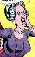 (Plastic Man I #4) - Madam De Lute and Mike attended a masked ball thrown by The Society to Preserve Aardvarks. Mike invited Plas and Gordy, with Gordy dressing up as Napoleon, and Plas changing into Napoleon's horse. A masked French woman cut in on Mike’s dance with Plas, and Plas thought he recognized her from somewhere, so he asked her outside to talk. She used her compact mirror to hypnotize Plas, and demanded he follow her out of the ball. The masked woman was Madam Merciless, who promised Dr. Dome she could make Plas his willing slave for two million dollars. Merciless employed two witch doctors, who cast a spell on Plas to make him follow any orders Dome gave him. Dome wanted to see if Plas really was under his control, and booted Plas in the rear, and then made him thank Dome for it. Plas inwardly fumed, neither the hypnotism nor the voodoo spell actually worked, he was just playing along to find out what Dome was up to. Lynx asked Dome if she could take Plas out for a spin, and he never could say no to his daughter. Lynx brought Plas to a park, and ordered him to kiss her, convinced that one kiss would forever make him her love slave. She then had Plas steal a mink coat for her, but they were spotted by Gordy and Mike, who’d been looking all over for Plas since he left the party. Lynx pushed Mike in front of a car, and Plas was forced to break his cover to save Mike. Madam Merciless had been trailing Lynx and Plas, and shot the hero with a hypno-dart before dragging him back to Dome’s headquarters and having her witch doctors cast another spell on Plas, and she promised Dome that this time she was absolutely certain it’d worked. Dome had Plas rob museums and an armored car before commanding him to walk across telephone lines to rob the Witherspoon mansion. Merciless had shortchanged her voodoo men for their work, so they undid the spell on Plas, who instantly snapped to, but lost his balance. Lynx, shot out of a cannon, Merciless riding a motorcycle, and Mike, flying a helicopter, all tried to keep Plas from falling. They all grabbed him at the same time, and in a tug-of-war over Plas ended up stripping him to his underwear. Plas captured Dr. Dome and handed him over to Captain McSniffe, who also arrested Plas for indecent exposure.