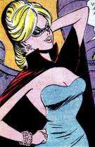 History: (Plastic Man I #4) - French criminal mastermind Madam Merciless approached Dr. Dome, offering to make his nemesis Plastic Man his helpless slave in exchange for two million dollars, and Dome jumped at the offer. Madam De Lute and Mike De Lute attended a masked ball thrown by The Society to Preserve Aardvarks, and Mike invited her boyfriend Plas and his pal Gordy Trueblood. Madame Merciless appeared at the party, cutting in on Mike’s dance with Plas, and Plas thought he recognized her from somewhere, so he asked her outside to talk. She used her compact mirror to hypnotize Plas, and demanded he follow her out of the ball. Merciless employed two witch doctors, who cast a spell on Plas to make him follow any orders Dome gave him. Dome wanted to see if Plas really was under his control, and booted Plas in the rear, and then made him thank Dome for it. Plas inwardly fumed, neither the hypnotism nor the voodoo spell actually worked, he was just playing along to find out what Dome was up to. Merciless gave Plas a physical exam, cooing over how impressive his body was, and Lynx was enraged, jealous that she wasn’t the one with her hands all over Plastic Man. Lynx asked Dome if she could take Plas out for a spin, and he never could say no to his daughter. Lynx brought Plas to a park, and ordered him to kiss her, convinced that one kiss would forever make him her love slave. She then had Plas steal a mink coat for her, but they were spotted by Gordy and Mike, who’d been looking all over for Plas since he left the party. Lynx pushed Mike in front of a car, and Plas was forced to break his cover to save Mike. Madam Merciless had been trailing Lynx and Plas, and shot the hero with a hypno-dark before dragging him back to Dome’s headquarters and having her witch doctors cast another spell on Plas, and she promised Dome that this time she was absolutely certain it’d worked. Dome had Plas rob museums and an armored car before commanding him to walk across telephone lines to rob the Witherspoon mansion. Merciless had shortchanged her voodoo men for their work, so they undid the spell on Plas, who instantly snapped to, but lost his balance. Lynx, shot out of a cannon, Merciless riding a motorcycle, and Mike, flying a helicopter, all tried to keep Plas from falling. They all grabbed him at the same time, and in a tug-of-war over Plas ended up stripping him to his underwear. Plas captured Dr. Dome and handed him over to Captain McSniffe, who also arrested Plas for indecent exposure.